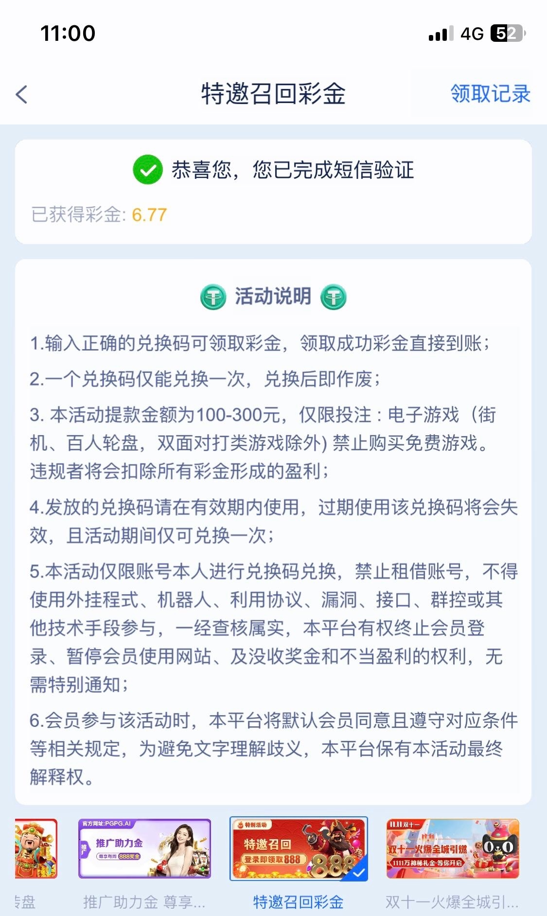 活动回归特邀,自助短信验证